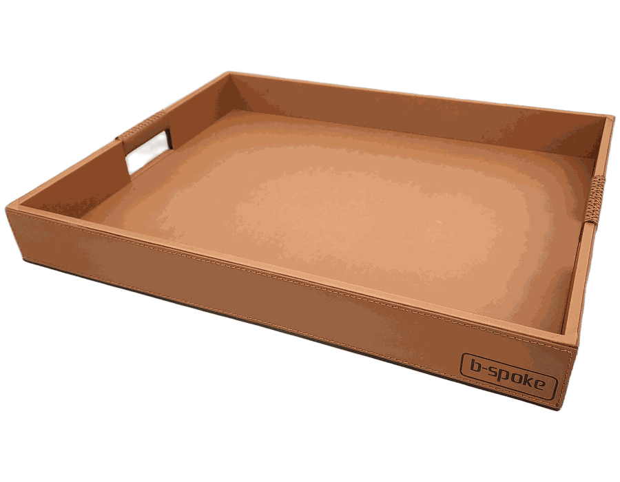 Bandeja de café. Revestimento externo em Couro Legítimo. Interior - revestido todo em material sintético impermeável na cor do couro. Alça em couro legítimo com costura manual. Fundo da bandeja em EVA antiderrapante.